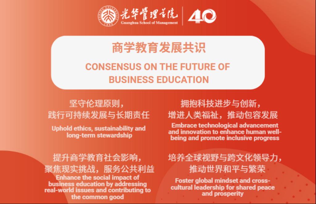 Beijing, May 26, 2025 — Peking University’s Guanghua School of Management convened a prestigious gathering of global academic leaders on May 24, marking the dual celebration of Guanghua’s 40th anniversary and the 5th anniversary of its groundbreaking Future Leaders Program. The event brought together deans and senior representatives from over 16 world-renowned business schools and culminated in the signing of a joint “Consensus on the Future of Business Education,” setting a collaborative vision for the future of global management education.